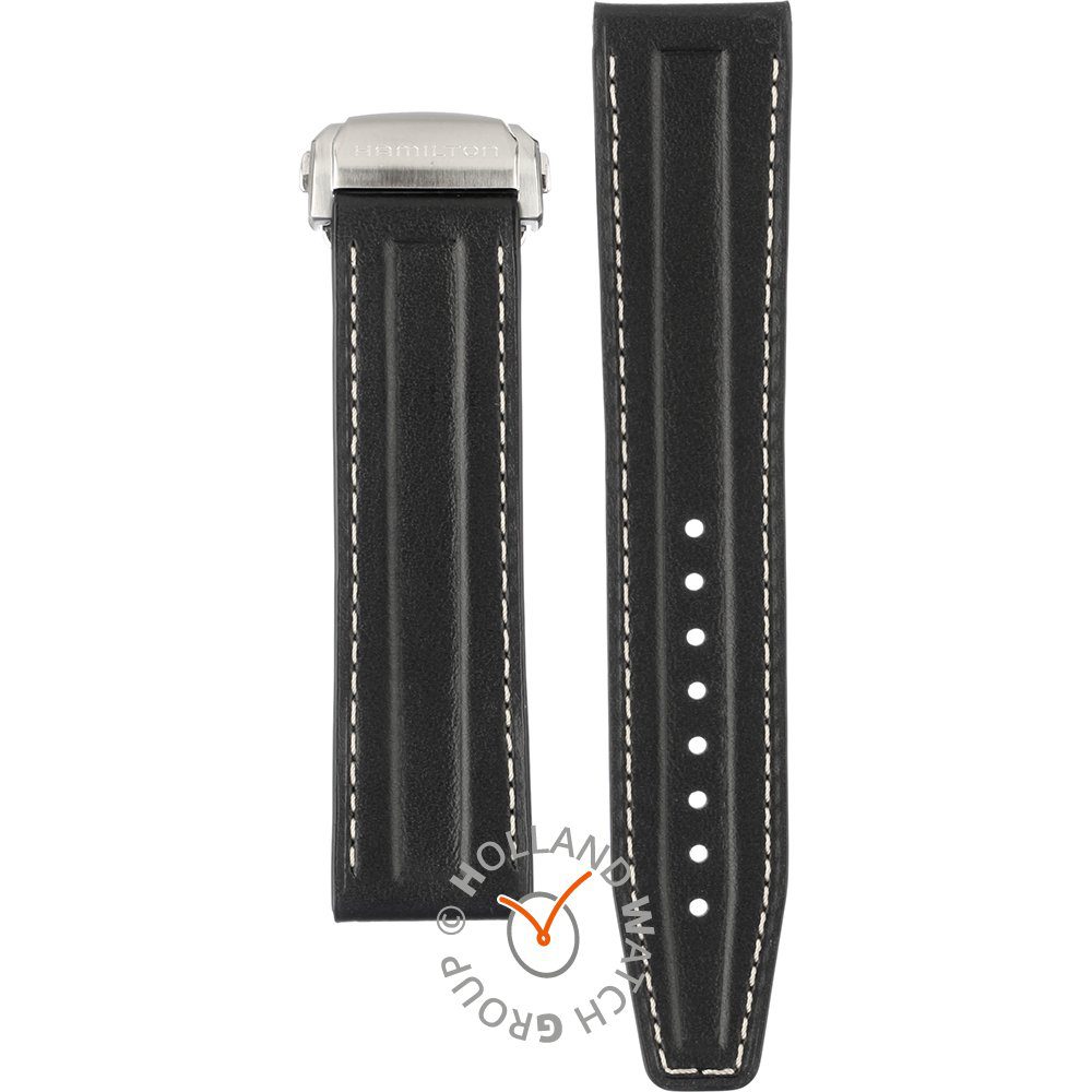 Hamilton Horlogebanden Horlogeband / H600.435.100 Zwarte Leren Horlogeband