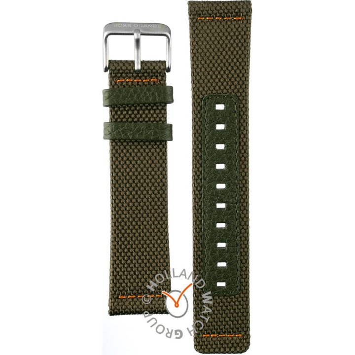 Hugo Boss Horlogebanden Horlogeband Met groen textiel overtrokken leren horlogeband voor heren