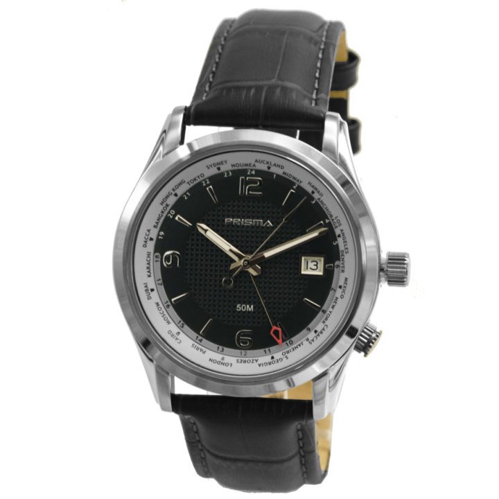 Prisma Herenhorloge P.1104 Lederen band Edelstaal