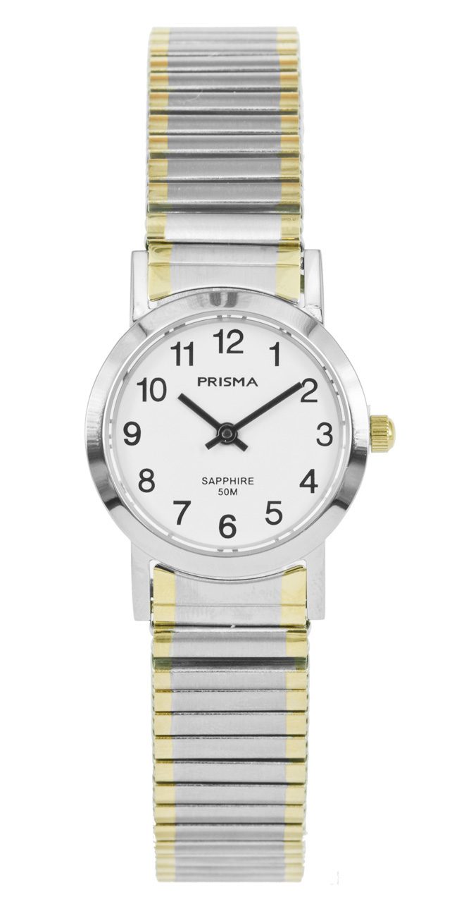 Prisma P.1816 Dameshorloge met rekband en saffierglas bicolor
