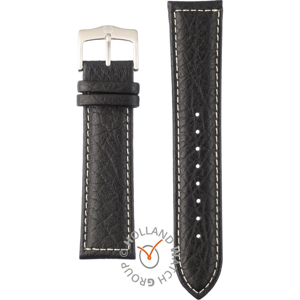 Swiss Military Hanowa Horlogebanden Horlogeband Zwarte Leren Band met Witte Stiksels